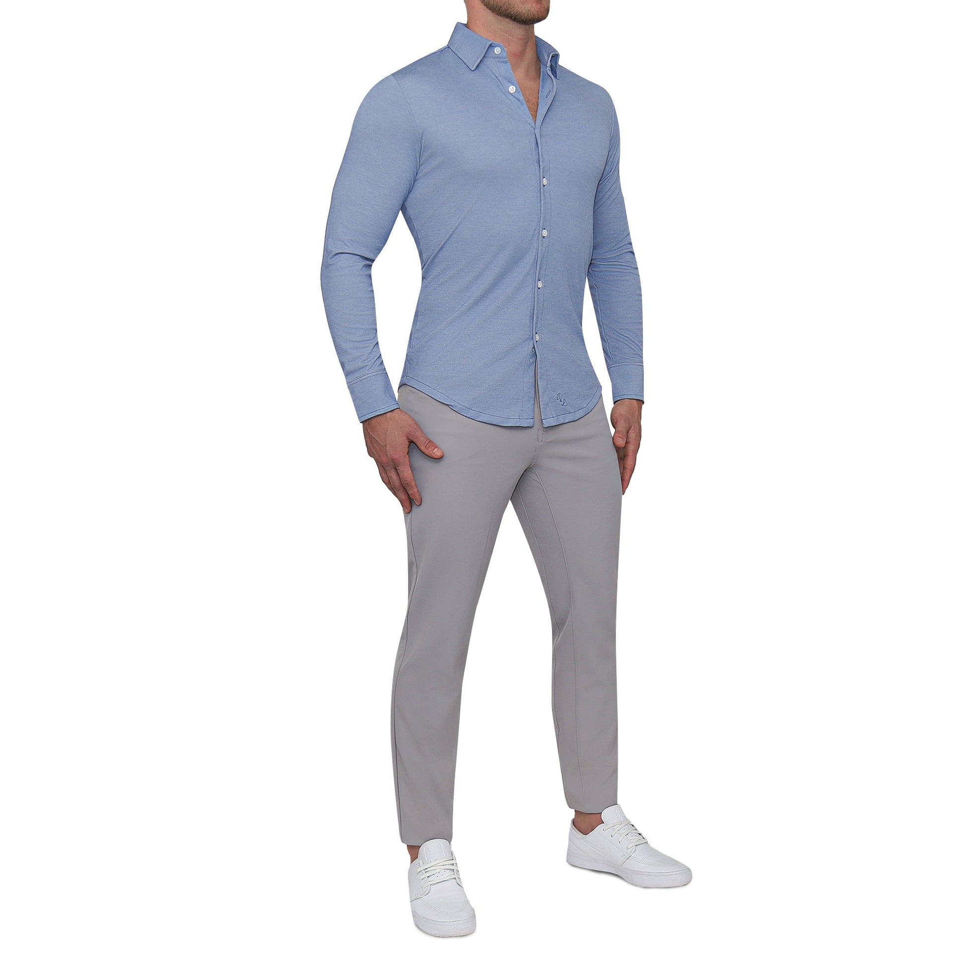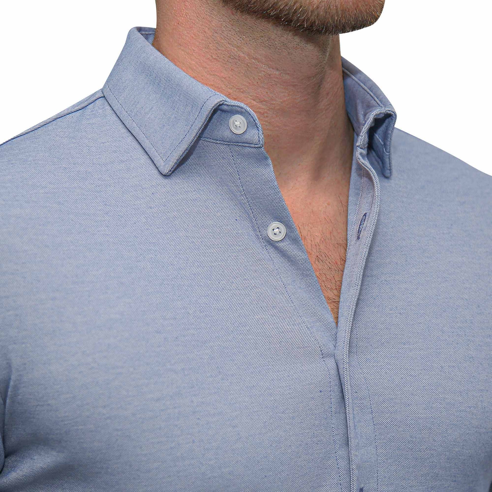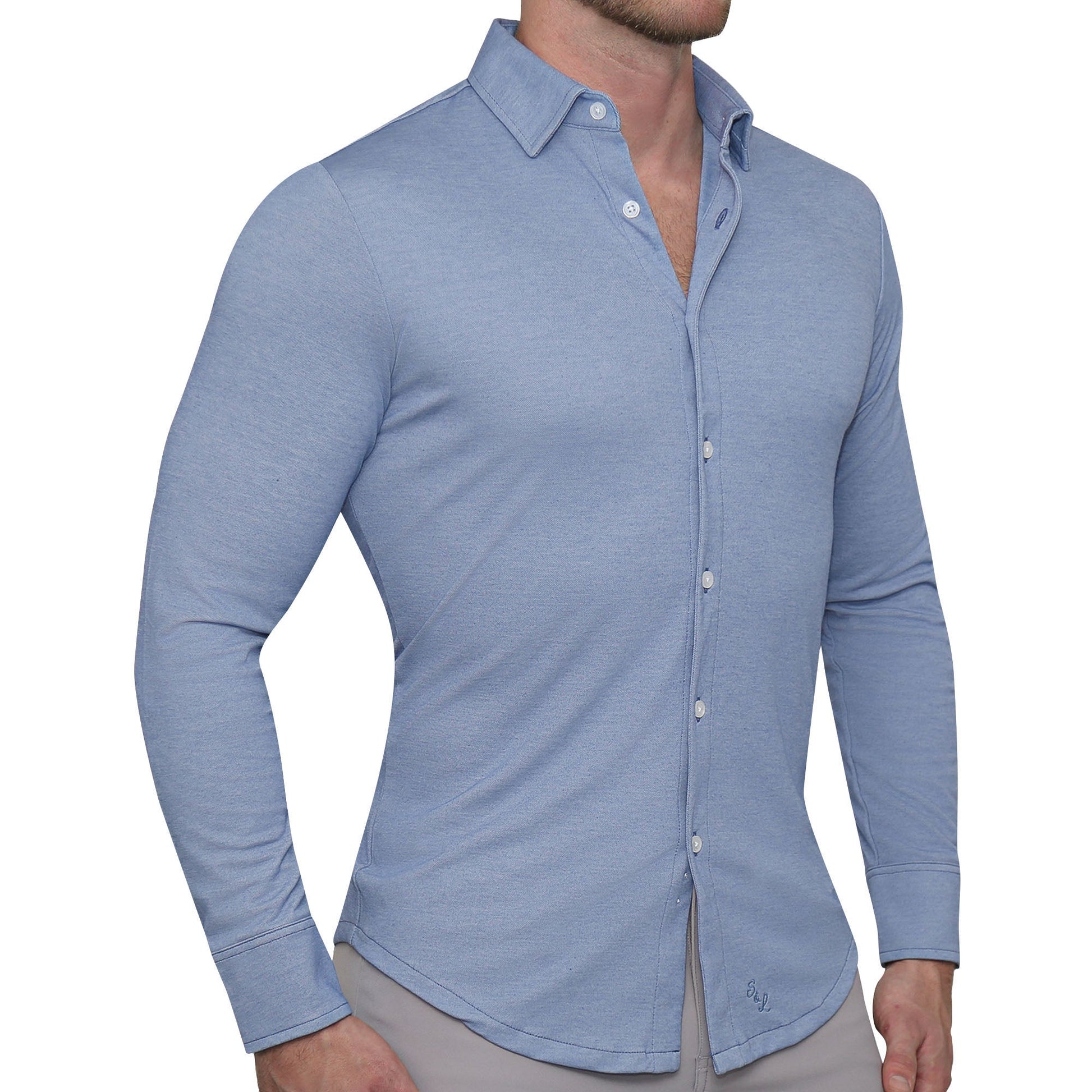 A true athletic fit casual button down crafted from our buttery soft and breathable stretch pique fabric. This button down puts a modern twist on a classic oxford style. Featuring shortened length and a curved hemline, this shirt is guaranteed to have you comfortable and sharp for both casual wear and a great night out.