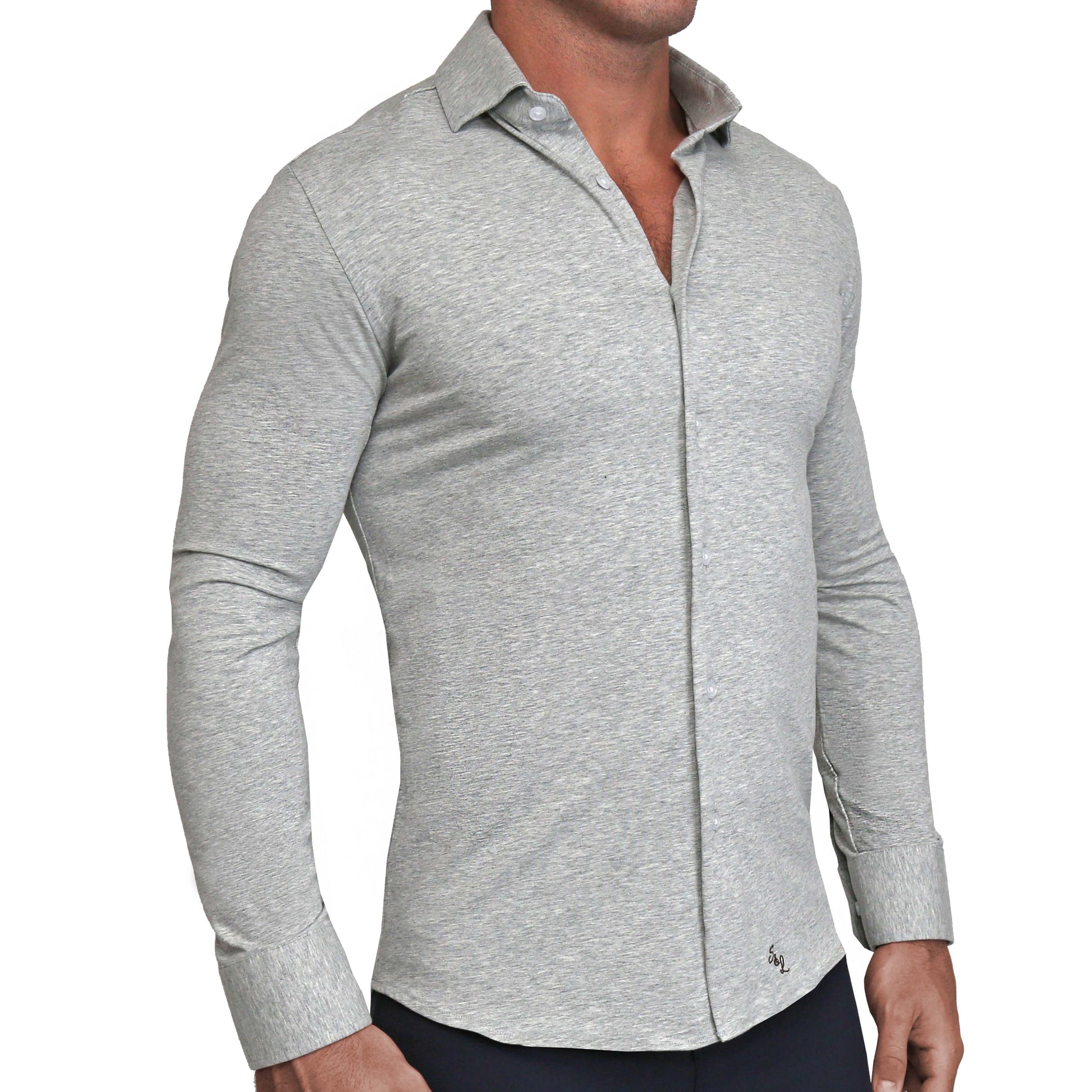 A true athletic fit casual button down crafted from a cotton-spandex blend, this grey casual button down is as soft and stretchy as it gets. "The Fowler" is the most versatile button down for all seasons. Featuring shortened length and a curved hemline, this shirt is guaranteed to have you comfortable and sharp for both casual wear and a great night out.