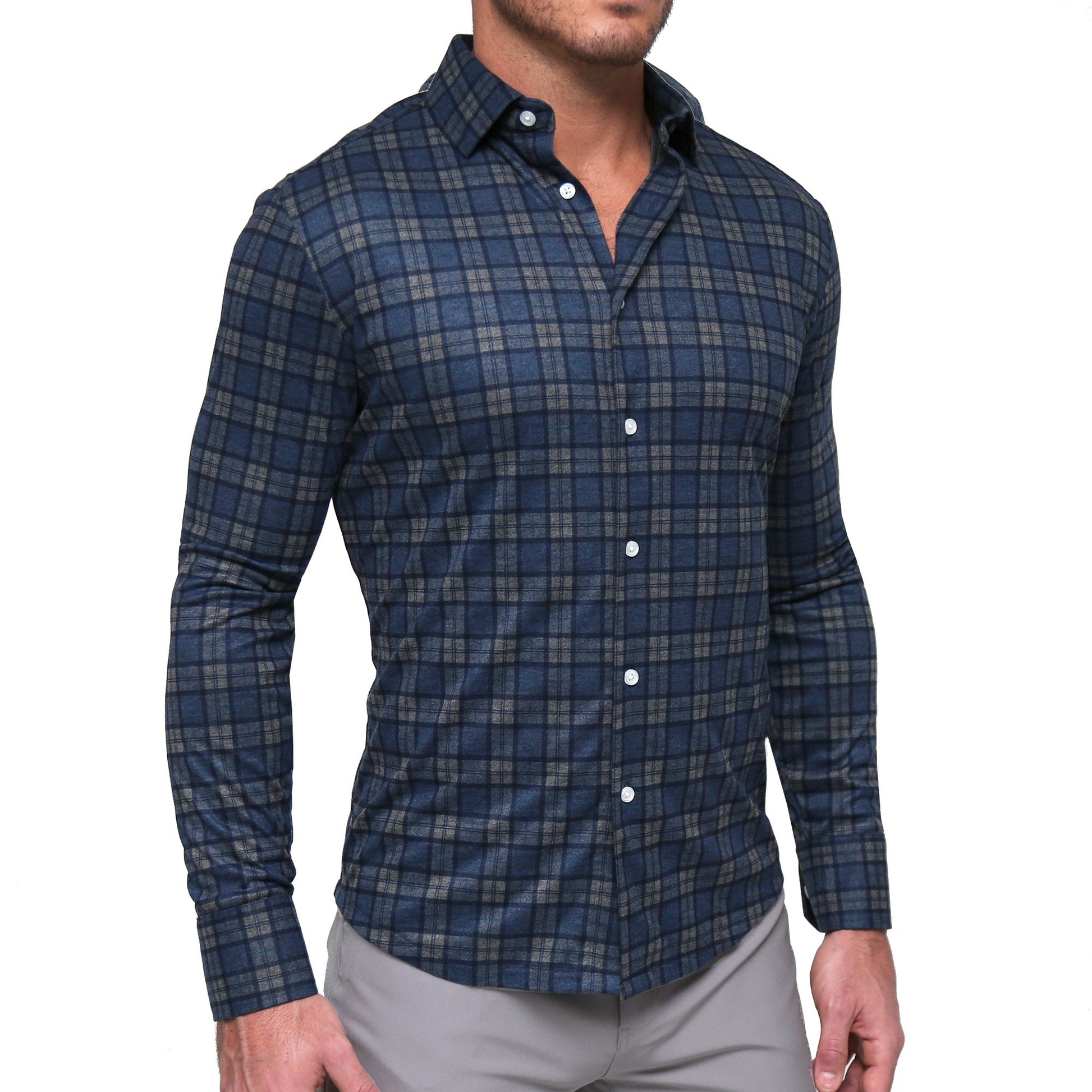 A true athletic fit casual button down crafted from a soft-brushed polyester-spandex blend, this blue, tan, & teal plaid button down is as stretchy and comfortable as it gets. "The Gregory" is the most versatile button down for all seasons. Featuring shortened length and a curved hemline, this shirt is guaranteed to have you comfortable and sharp for both casual wear and a great night out.