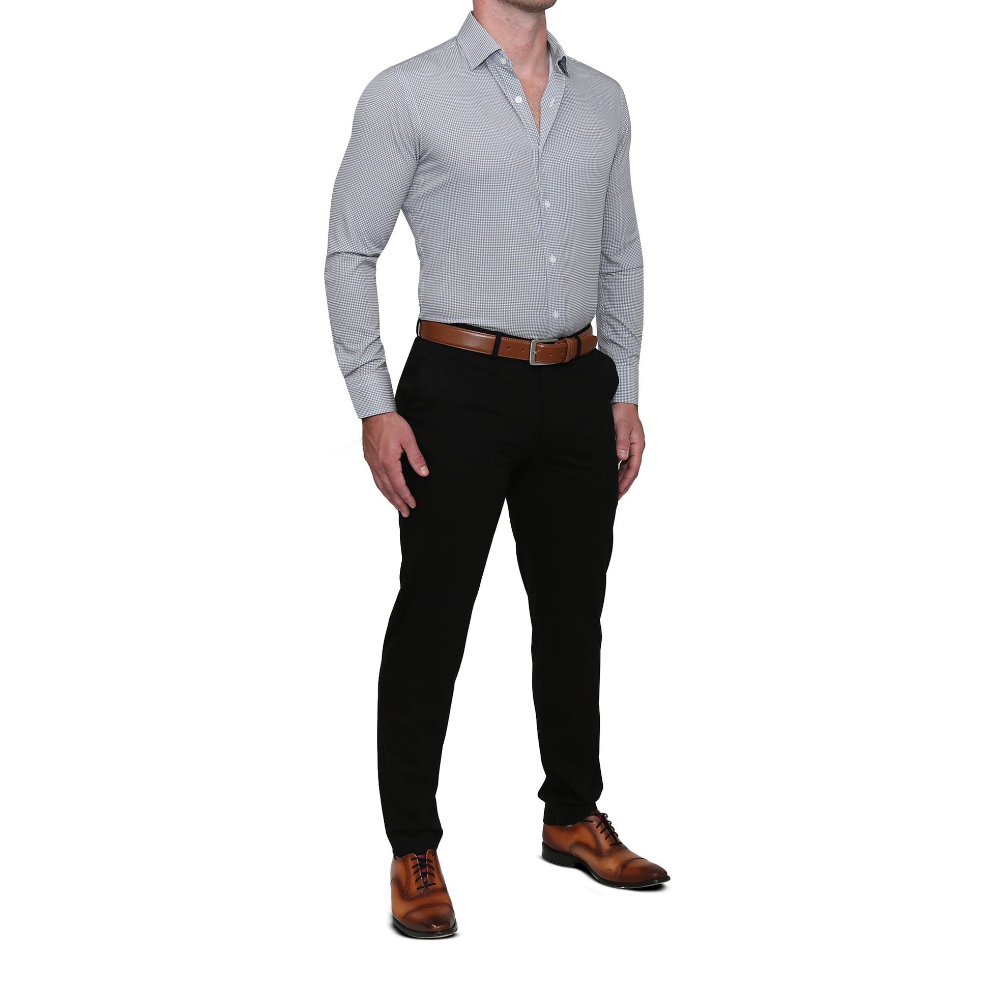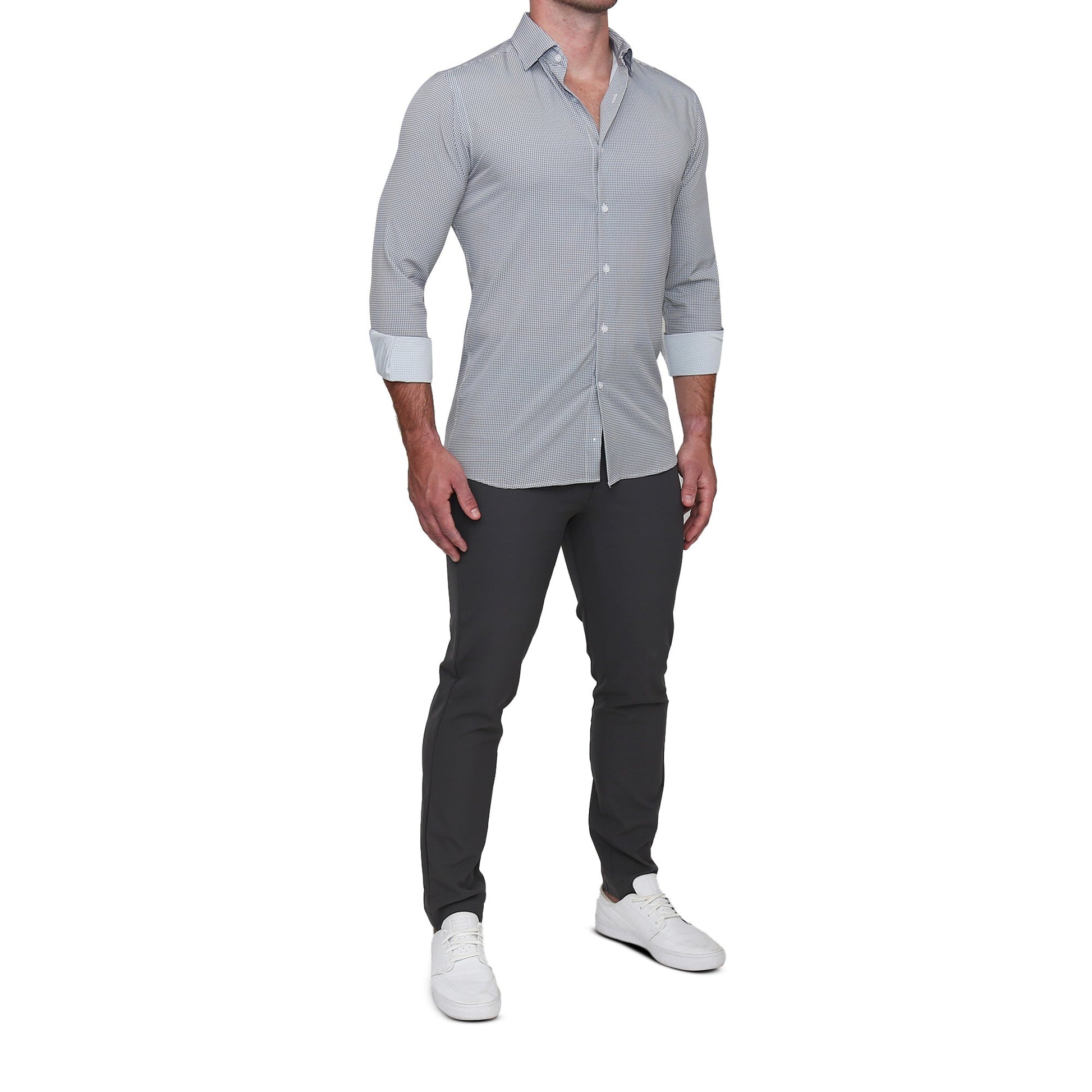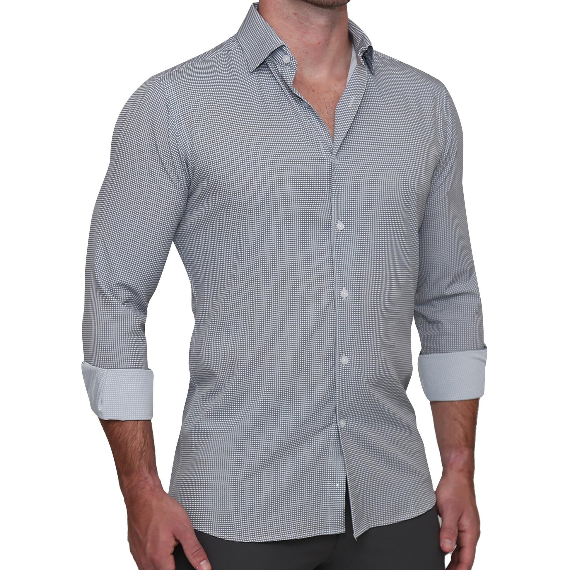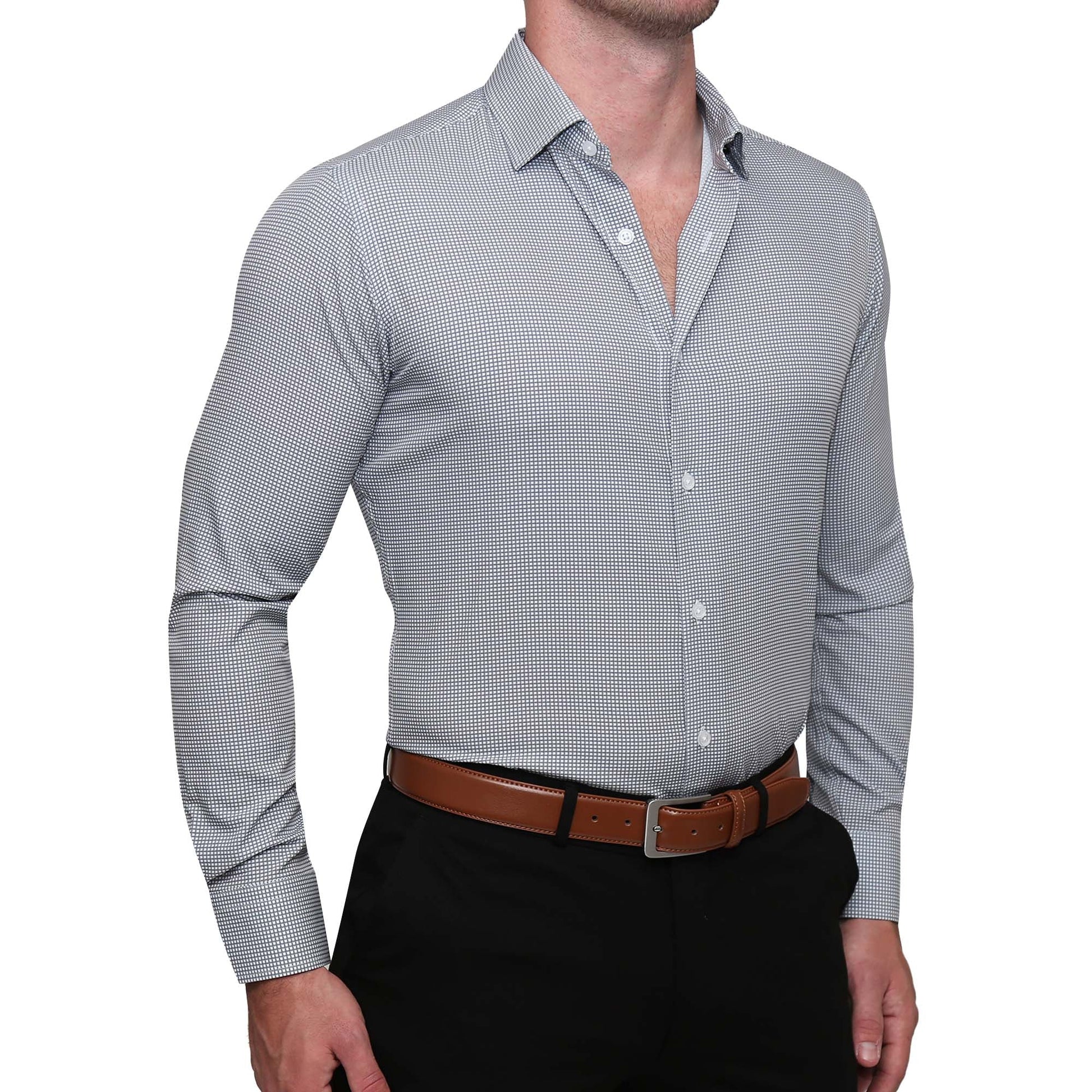 Our signature athletic fit dress shirt crafted from performance stretch fabrics. "The Harris" Grey Roped Windowpane is an excellent business casual staple that makes a versatile addition to any dress shirt collection.