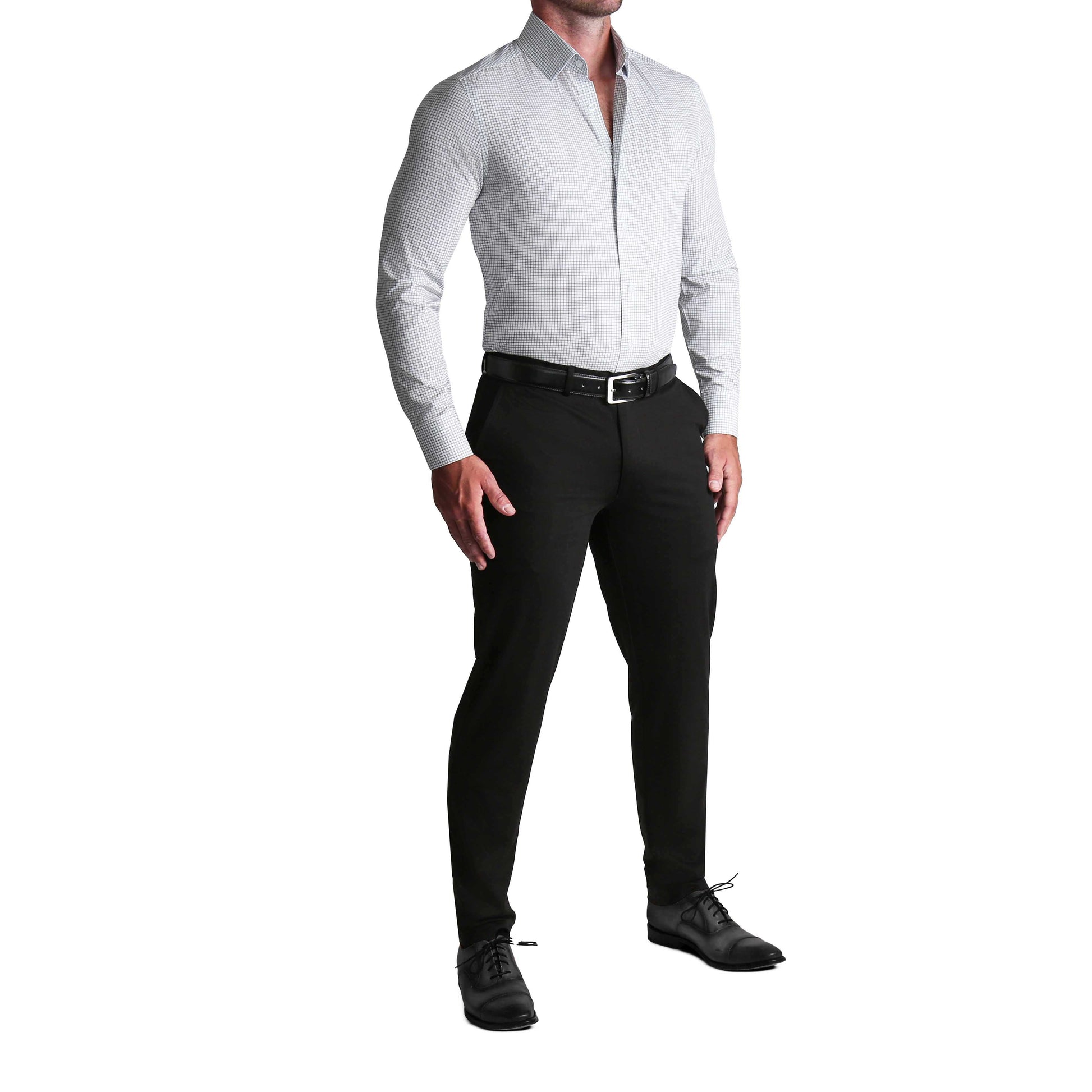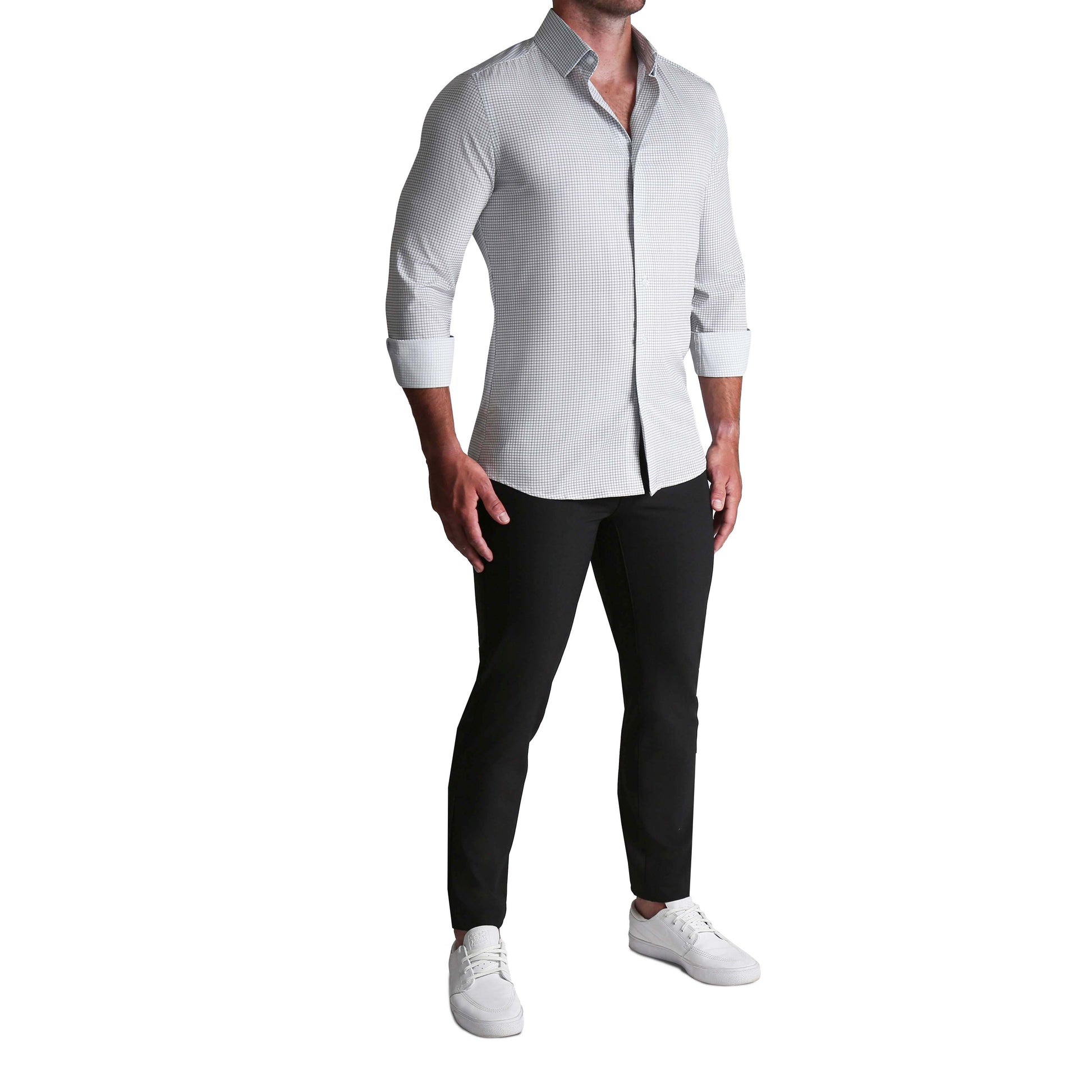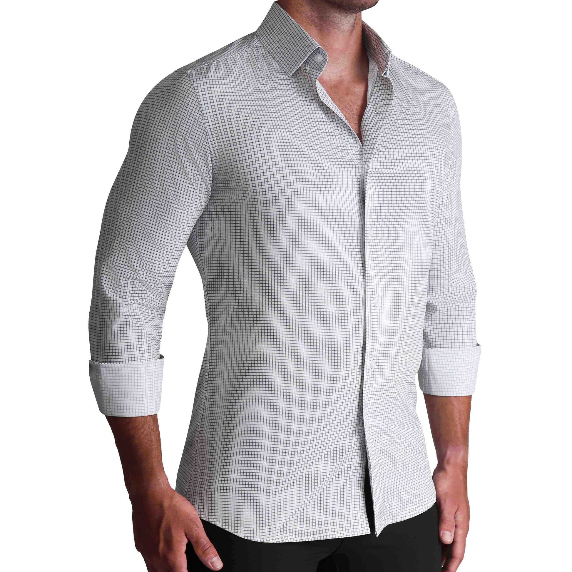 Styling: Structured semi-spread collar and singe button angled cuffs