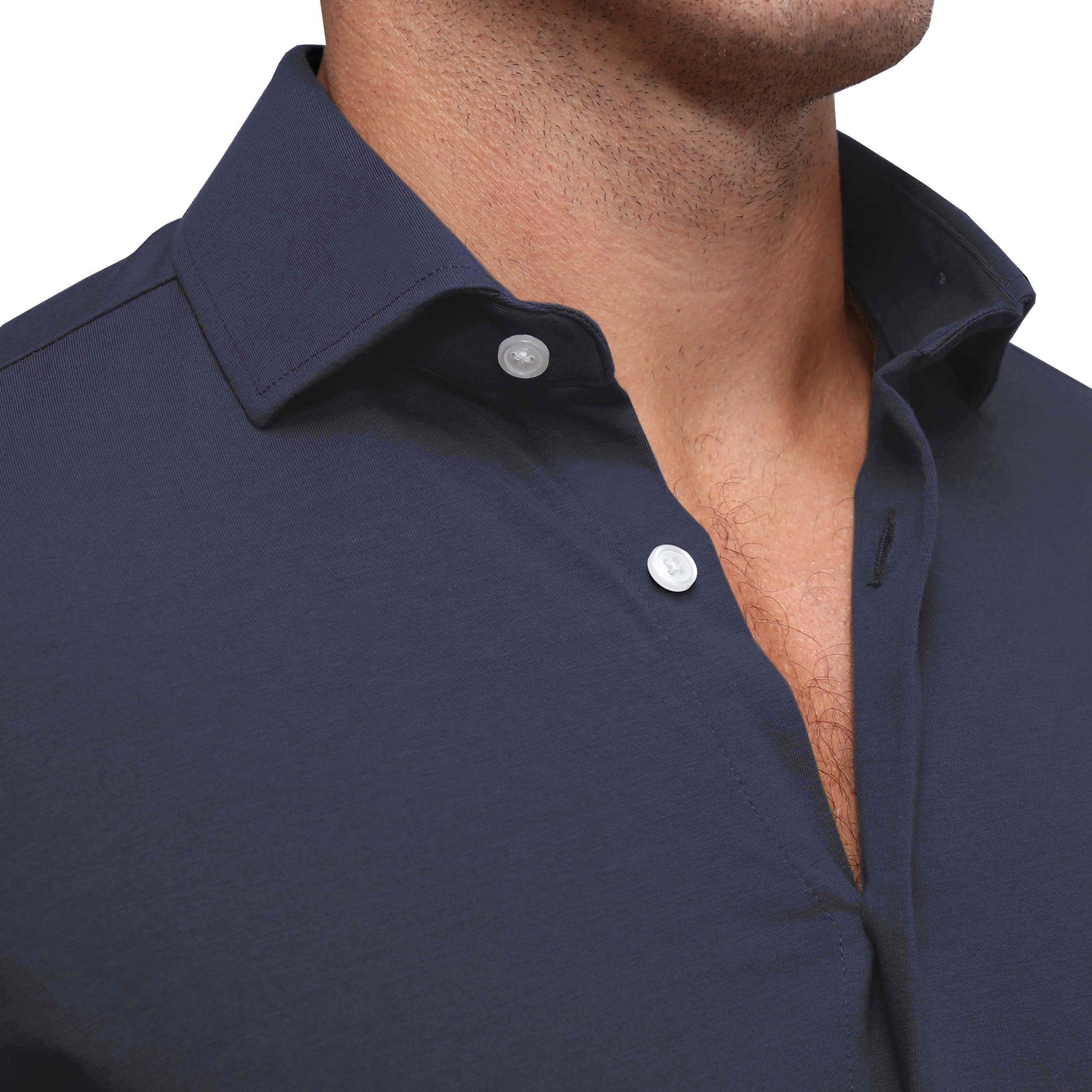 A true athletic fit casual button down crafted from a cotton-spandex blend, this navy casual button down is as soft and stretchy as it gets. "The Stewart" is the most versatile button down for all seasons. Featuring shortened length and a curved hemline, this shirt is guaranteed to have you comfortable and sharp for both casual wear and a great night out.