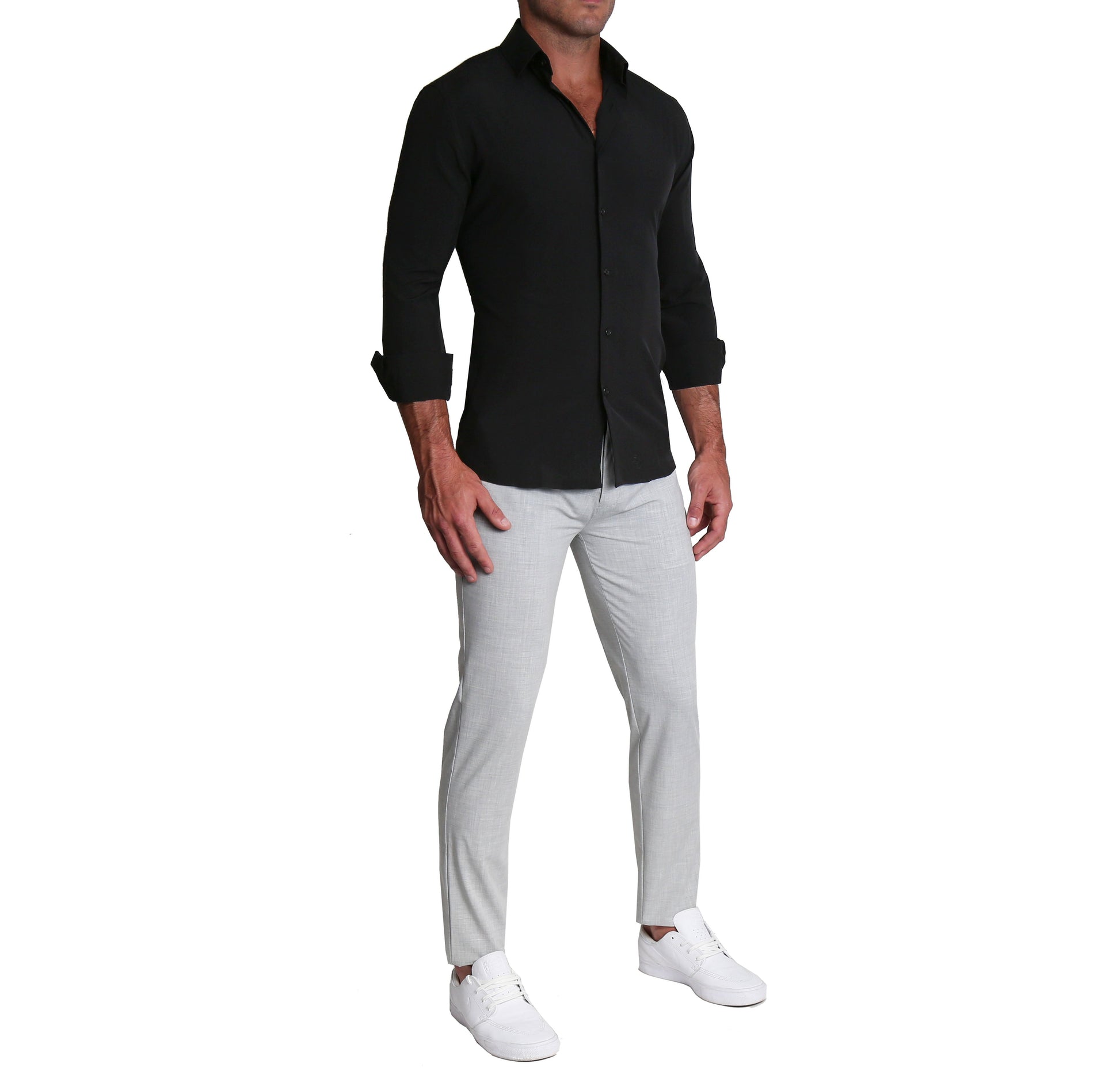 Styling: Structured semi-spread collar and single button angled cuffs