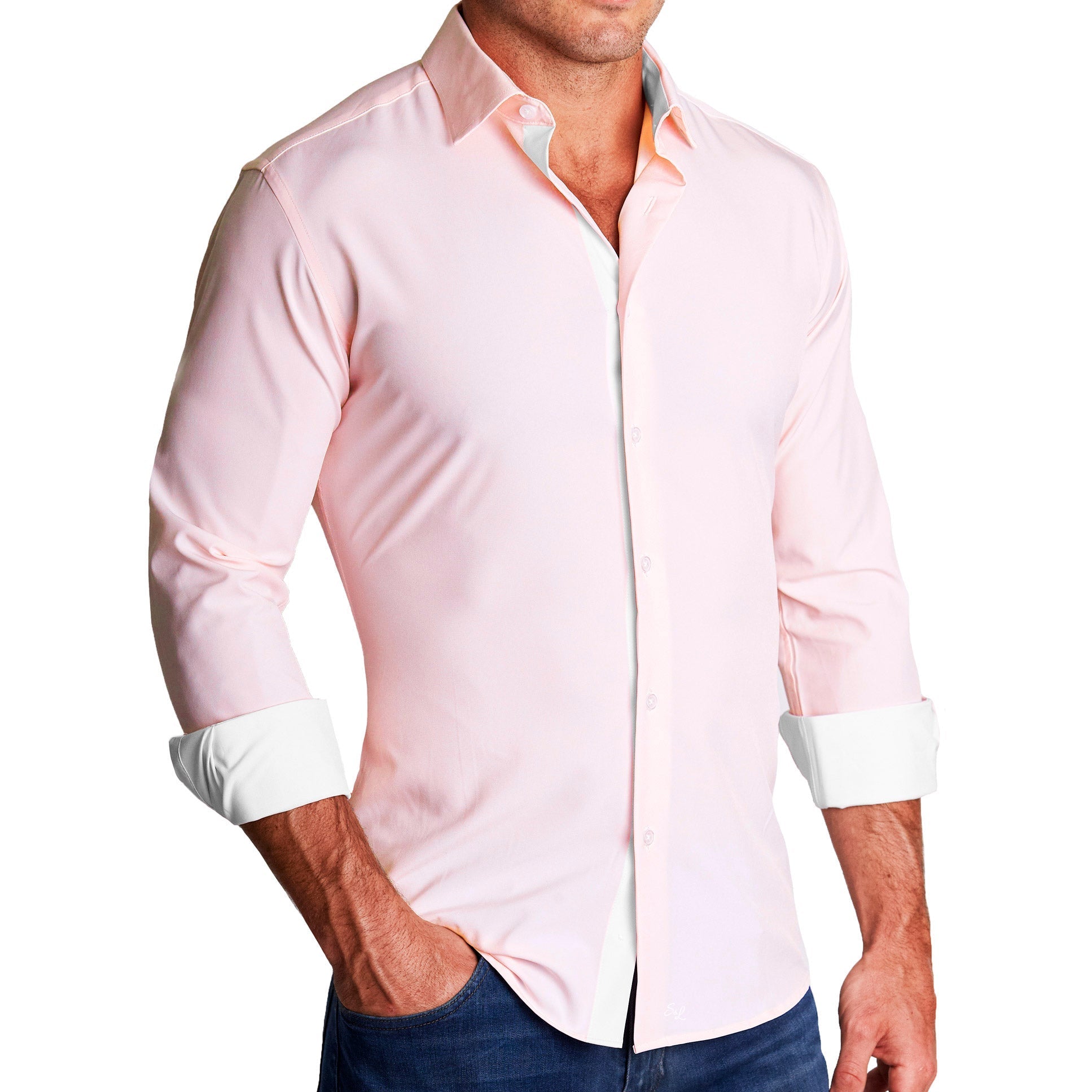 Our signature athletic fit dress shirt crafted from performance stretch fabrics. "The Travis" solid pink with white accents is an excellent business casual staple that makes a versatile addition to any dress shirt collection.